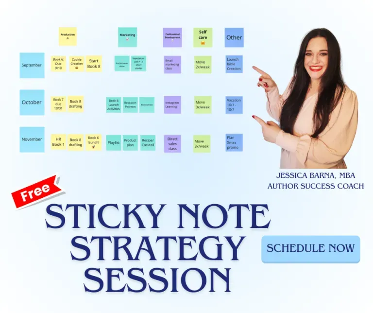 "“I knew I had to focus more on my author marketing, but I was overwhelmed with the idea of getting it done. Jessica helped me break it down into a clear action plan that will help me be consistent and stay on track. Within an hour, Jessica had created a sticky-note map that I can easily follow and refer back to if I get off track. I left the session feeling confident that I can accomplish my marketing goals. If you know what you ‘should’ be doing in your author career, but you’re having trouble figuring out where to start, I recommend booking with Jessica. You will leave feeling a lot less overwhelmed and much more motivated.”"
